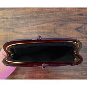 • Sturdy maroon plastic frame with kiss-lock closure