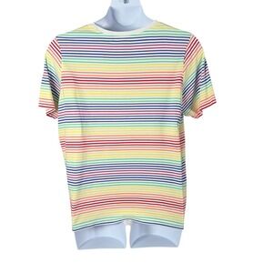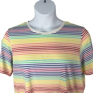 Lands End T-shirt Women 1X 16W-18W Rainbow Stripe Supima Cotton Short Sleeve Tee