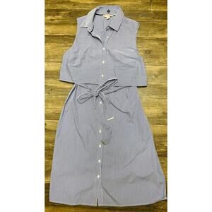 Classic meets modern in this Brooks Brothers Red Fleece blue & white striped one-piece shirt dress.