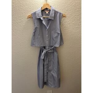 The mixed stripe direction adds visual interest—horizontal stripes on the overlay top paired with vertical stripes on the skirt—giving it that elevated, tailored Brooks Brothers feel. Lightweight 100% cotton makes it breathable and perfect for warm weather, workwear, brunch, or coastal summer styling.
