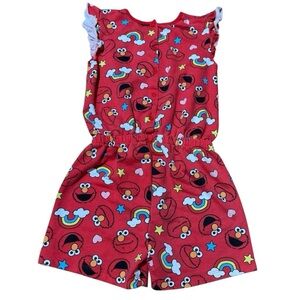 Sesame Street Red Elmo Romper Rainbow Girls size 7/8