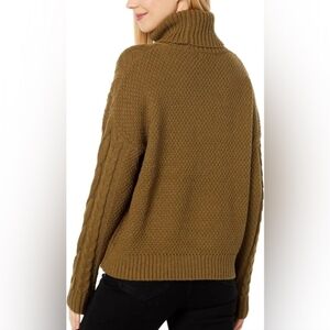 Exude absolute grace wearing this relaxed fit, cable knit, turtleneck sweater by Madewell. Pullover styling. Dropped shoulders. Long sleeves. Ribbed hemline, neckline, and cuffs. Color Brown. Size Small.