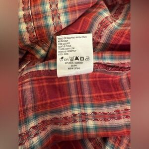 Step into classic Western charm with the Woolrich Women's Large Red Plaid Pearl Snap Top – where timeless fashion meets laid-back luxury!