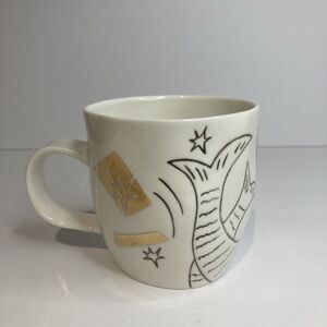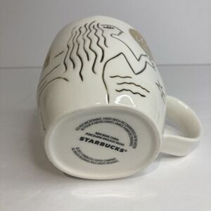 This Starbucks coffee mug features an etched line design with a beautiful mermaid theme. The white and gold color combination makes it a perfect addition to any collection. The mug is made of high-quality ceramic material and can hold up to 12 ounces of your favorite coffee. It was created in 2013 to celebrate the anniversary of Starbucks and is an original piece. The mug is perfect for coffee lovers who also enjoy collecting unique items.
