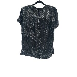 Diane Gilman Black Sequin Short Sleeve Silk Top Blouse Party
