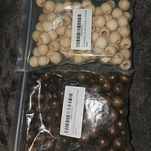 Two new bags of 16mm wood beads in the original packaging. There are 100 beads per bag, for 200 beads total.