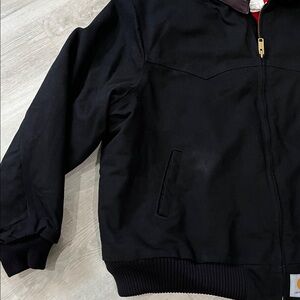 Vintage Carhartt J13 BLK black duck canvas jacket with red quilted lining.