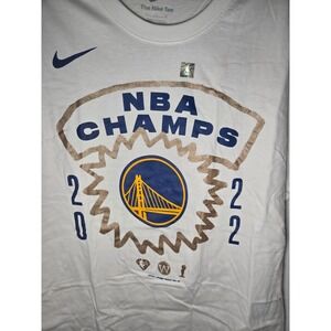 Brand new without tags Nike brand men's Golden State Warriors 2022 champions tshirt. White with cool design made to look like it was hand drawn on front and back. From has team name and logo and year they won. The back features team roster and the trophy. Never worn or washed. Size small