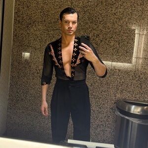 @ljfoster689 Posted a photo that was taken from afar, unfortunately I do not have video. I can wear it for you and post a photo in a week. The size of men’s shirt is a medium.