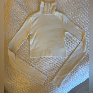 Stay cozy and stylish with this elegant cream turtleneck sweater. Fitted and flattering. Perfect for layering or wearing on its own. Worn one time, great condition.