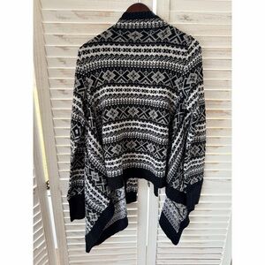 Carolyn Taylor | Open Front Waterfall Geometric Stripe Sweater Cardigan