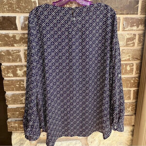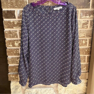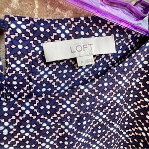 Loft Blue Pink & White Geometric Blouse, M