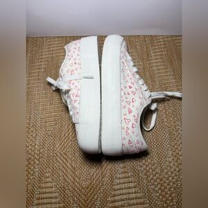 Joie Heart Pattern Chunky Heel Tennis Shoes,White&Pink Sneakers,Size 7 1/2,NWT