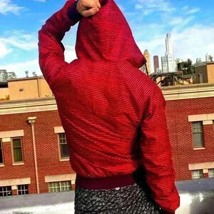 NWOT Women running jacket striped maroon zip up hoodie jacket small