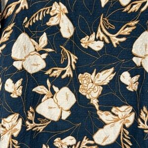 Splendid summer dress made of 100% rayon. It is navy blue with a pretty ecru floral print.