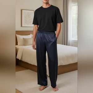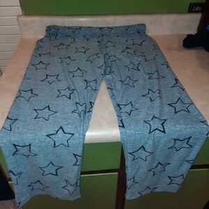 Comfortable pajama pants featuring a star print design and plain blue. Includes a light blue pants with navy stars.