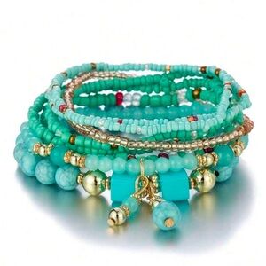 Enhance your style with this stunning turquoise beaded bracelet set. Perfect for adding a pop of color to any outfit.