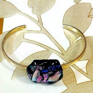 Southwest Signed Sterling Dichroic Glass Stone Cuff Bracelet Sz 6.25-6.5