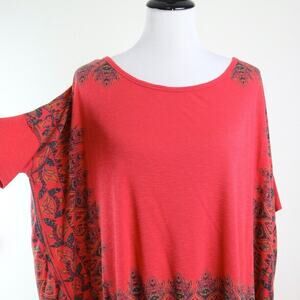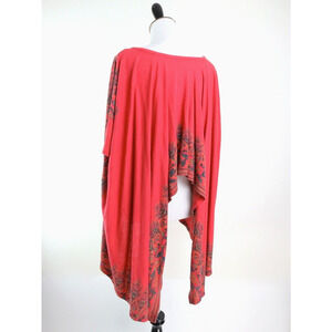 Free People Size S Oversize Split Back Tunic Red Black Pimento Floral