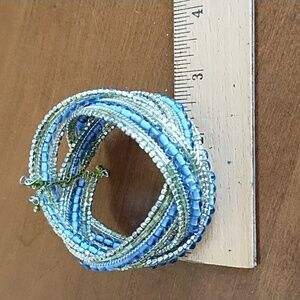 Beaded Cuff Bracelet Bohemian Hippie Cruise Beach Resort Travel Blue Green Gold