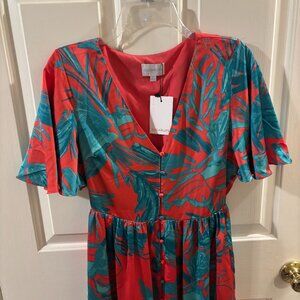 Sugarlips Women's Palm Tropics Pismo Button Down Flutter Maxi Dress ~ XS ~ NWT