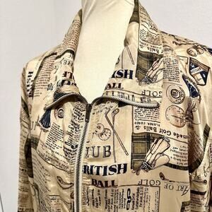 Vintage Silk Golf Novelty Print Track Suit Co Ord Set 90s Sporty Athleisure Tan