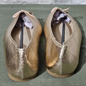Step out in style with these chic gold loafers featuring a charming bow accent. Perfect for any occasion.