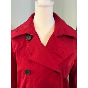 Lauren Ralph Lauren Red Trench Coat Large Double Breasted Classic Lined