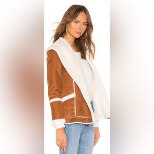 CHASER NEW Women's Whisky Brown and White Faux Shearling Jacket Size S Vegan