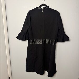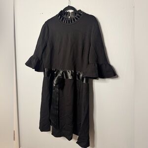 Stylish black dress with elegant satin ruffle neckline. Ideal for versatile wear