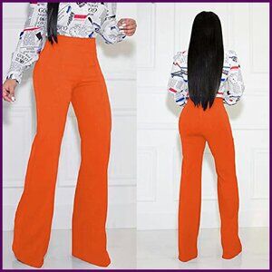 • Style: High-waisted bootcut trousers with a slightly flared leg and a smooth, elasticized waistband for a pull-on design.
