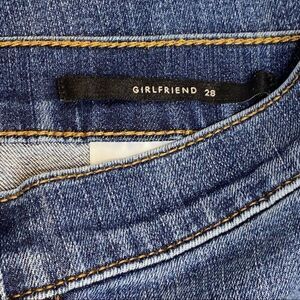 PacSun girlfriend stretch jeans size 28. Raw hem. Very good condition. 71% cotton 14% rayon 14% polyester 1% spandex. Waist 15” Rise 9” Inseam 31”.
