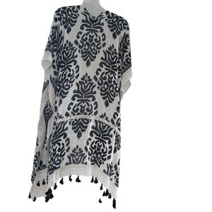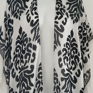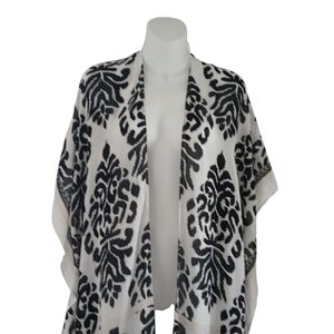 Nordstrom Duster Kimono Longline Tassels Open Front Black & White Boho