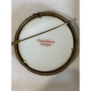 Antique Limoges Brooch Pin Porcelain Hand Painted Signed France pastoral scene