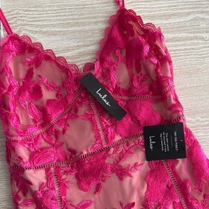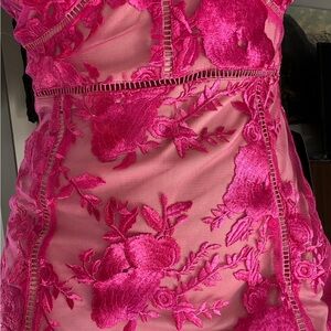 This vibrant lace dress offers a feminine touch to your event or night out.
