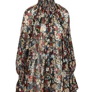 Edgar long dress in silk chiffon with high neck and pleated floral print