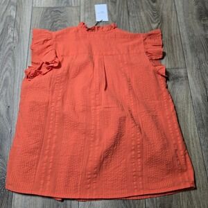 THML The Norah Embroidered Button Down Shirt Womens Large Orange NWOT