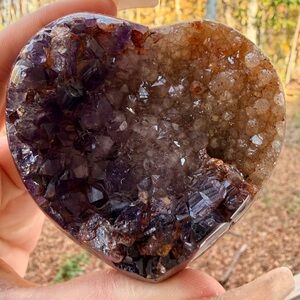 Powerful and symbolic twin flame agate and amethyst druzy heart from Uruguay, featuring rich violet amethyst crystal points framed by natural agate banding. This heart displays a beautiful balance of grounding agate and high-vibration amethyst, creating a deeply meaningful and visually striking piece.