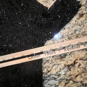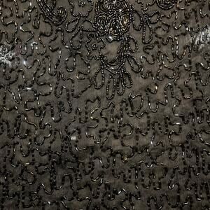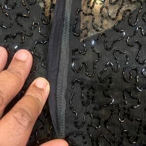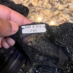 Vintage Women Small Beaded Black 3/4 Sleeve Heavy Top Zipper Back Emo Grunge
