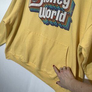 Walt Disney World Retro Hoodie Adult 2XL Yellow Sweatshirt Vintage Style Pocket
