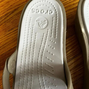Crocs Swiftwater sandal, size 10W. Beige and white, in excellent used condition.