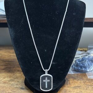 Stylish Guess necklace with a silver chain and black cross pendant. Ideal for versatile wear.