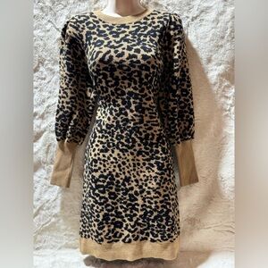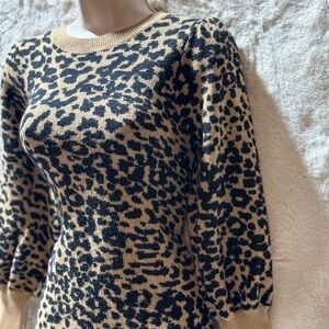 LOFT Knit Sweater Dress medium Leopard Print crew Neck Y2K Fall Autumn NWOT