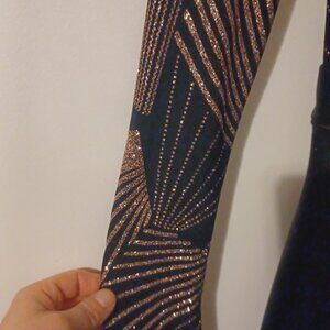 Betsy & Adam Size P2 Black and Gold Wedding Party Dress