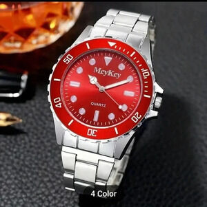 Round Pointer Quartz Watch Casual Rhinestone.. stainless steel..NWT RED..we bundle..enjoy