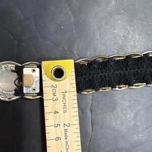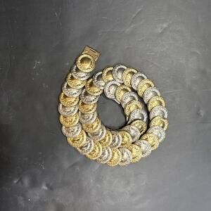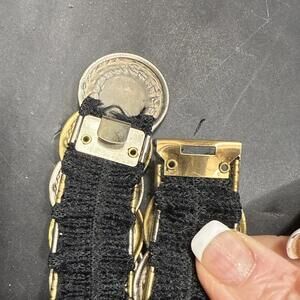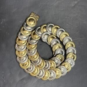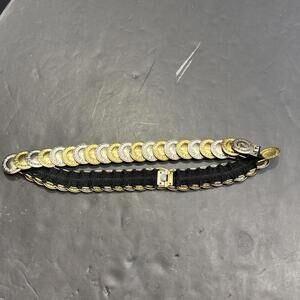 Vintage Gold Silver Metal Disc Coin Stretch Belt 80s Medallion Roman