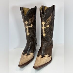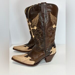 Vintage Rogers Cobra Snake Skin Western Boots Women Sz 8 Exotic Bikercore Cross