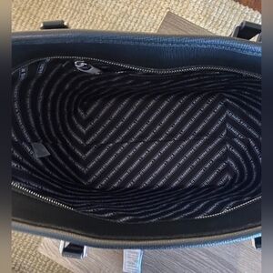 Black XL Karl Lagerfeld varsity patch tote with zip closure the patches are fuzzy lol gold hardware very spacious inside can fit iPad or smaller laptop brand new!