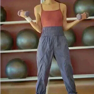 These breezy, warm-up style joggers feature a boldly smocked waistband with a high-rise silhouette and cinched ankles.