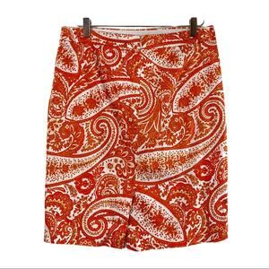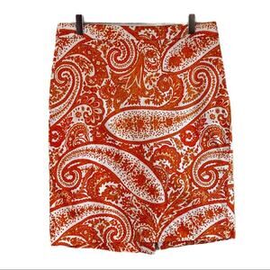 J.Crew Women's The Pencil Skirt Classic Straight Orange Cream Paisley Size 8